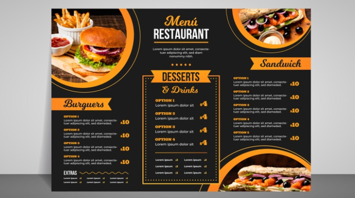 | Description | One side menu design Delivery within 24 hrs Unlimited Revisions | Both-sided Menu design Delivery within 24 hrs Unlimited Revisions | Tri fold or Bi fold Menu design in premium quality All the files included |